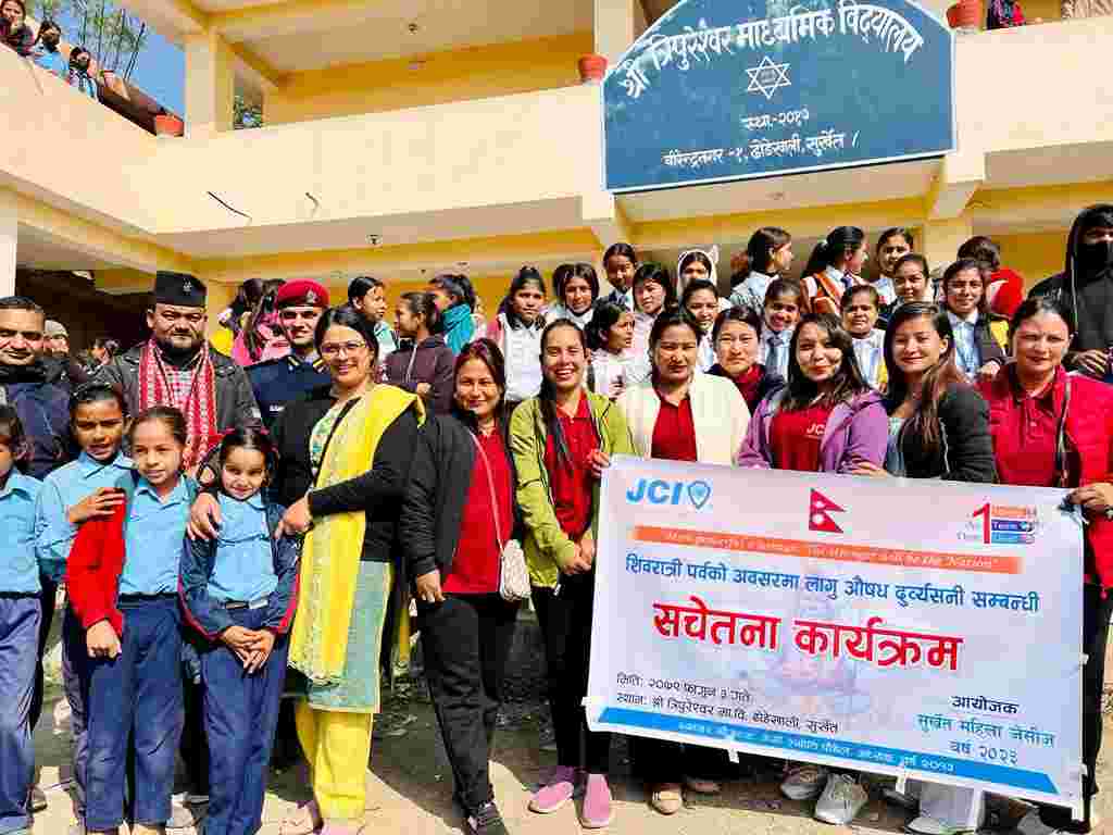 मिति २०७९/११/०३ गते (15th february 2023) मा दिन सुर्खेत महिला जेसीजकाे अायाेजनामा लागू आैषध दुर्व्यशनि सम्बन्धि सचेतना कार्यक्रम सुर्खेत महिला जेसीजका अध्यक्ष जेसी सीता भण्डारीकाे अध्यक्षतामा सम्पन्न गरियाे । उक्त कार्यक्रममा प्रमुख अतिथि वर्डा नं १ का वर्डा अध्यक्ष दिनेश खत्री ज्यु रहनुभएकाे थियाे भने प्रमुख प्रशिक्षक जिल्ला प्रहरी कार्यालयका प्रहरी निरिक्षक मिलन पाण्डे ज्यु रहनु भएकाे थियाे । कार्यक्रममा सुर्खेत महिला जेसीजका पुर्व अध्यक्ष ज्युहरू क्रमस :जेेसी सुष्मा गिरी ज्यु ,लक्ष्मी गुरूङ ज्यु,मनिषा काैशल ज्युकाे पनि उपस्थिति रहेकाे थियाे ।